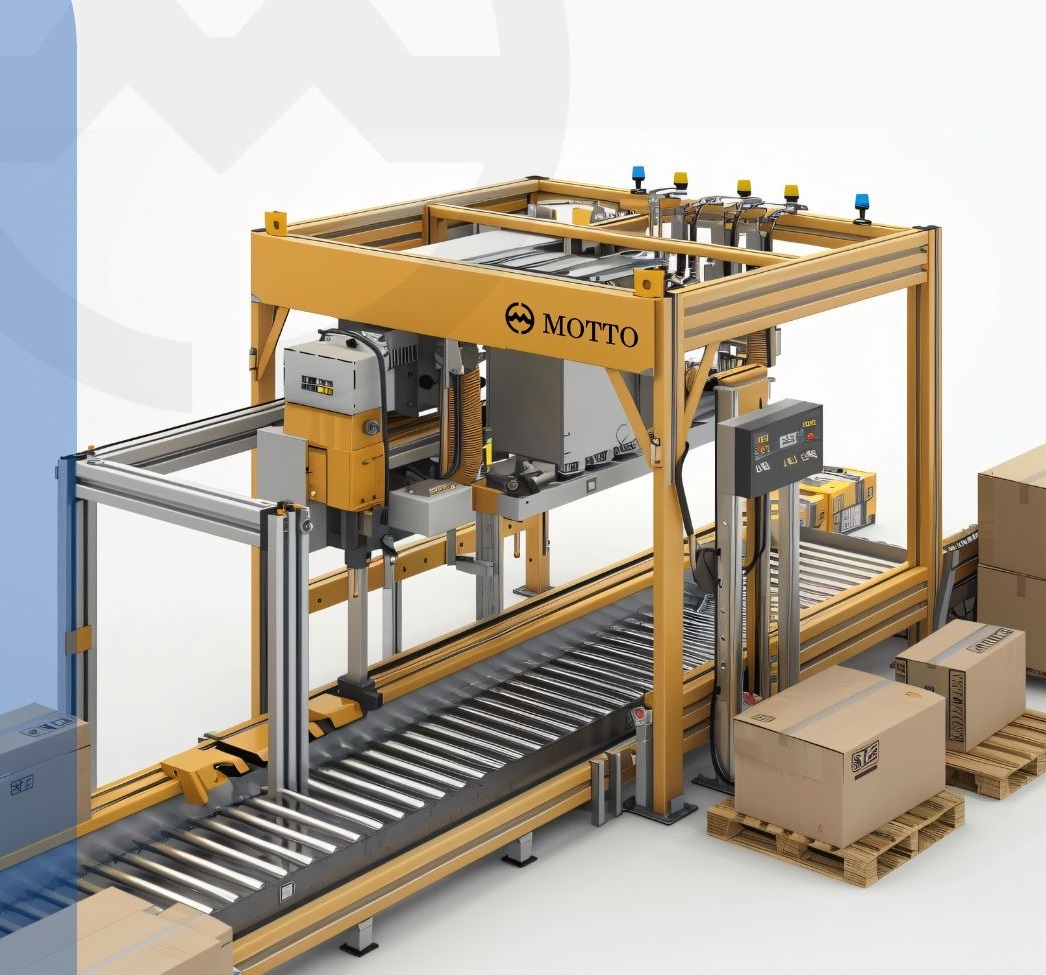 Kartezyen Paletleme Makinelerimiz birincil işlevi, koli, torba veya kasa gibi ürünleri bir palet üzerinde düzgün, sabit katmanlar halinde düzenlemektir. Mafsallı kollar kullanabilen geleneksel robotik