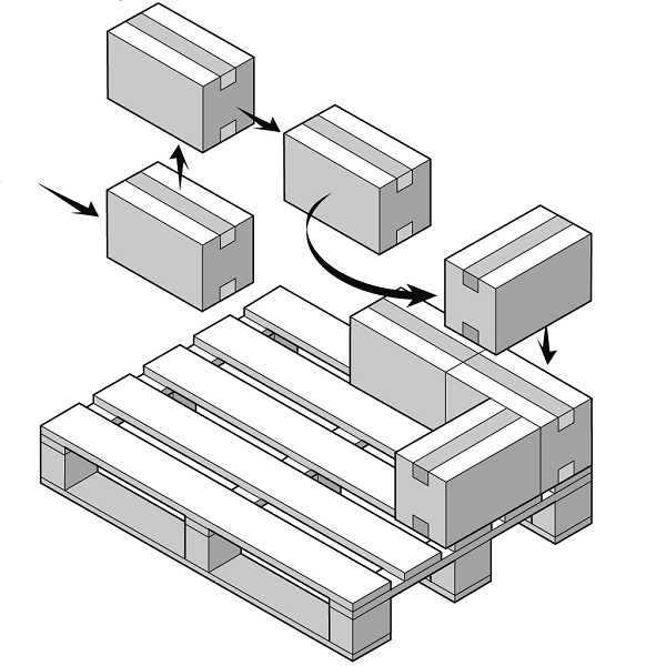 paletleyicilerin aksine, Kartezyen Paletlemeler doğrusal bir X, Y ve Z ekseni sistemi üzerinde çalışır.
